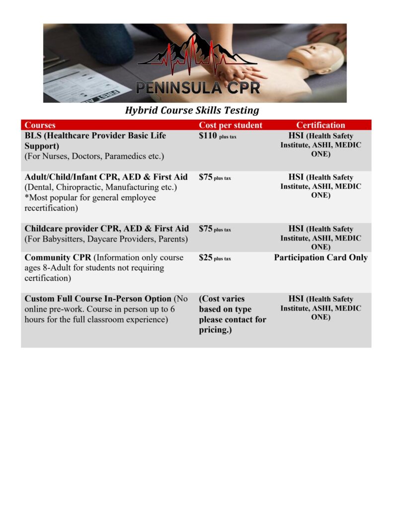 - All courses taught by AHA and HSI certified instructors and fulfill state requirements for most medical and social service employees.